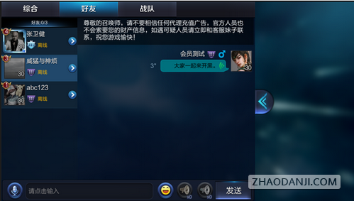 在好友聊天频道,增加好友列表,可更方便的查看好友信息,并和好友进行互动;