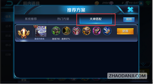 在大神排行中查看大神信息时,可直接将大神的出装方案使用到自己的局内装备方案中。同时在局内装备配置界面,也新增了大神出装方案,并支持便捷的套用大神方案,离大神更近一步了有木有!