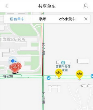 如下图显示,在新版的百度地图中,可以看到ofo小黄车、摩拜共享单车的图标选项,选择之后便可进行扫码解锁操作,无需单独安装相应的App了。