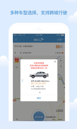 1、下载共享汽车APP,手机打开软件,系统显示出附近网点和车辆信息,查看附近所有可用车辆的续航里程,根据出行需求选择车辆。