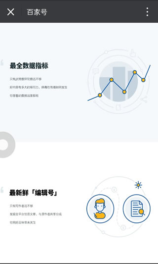 百家号App让创作者能在手机上便捷的管理和发布文章、图集、视频等内容,查看内容和收入数据,以及实时接收平台公告和消息。