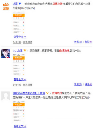 就在刚刚,也一直有去刷热搜的习惯的我,发现竟然自己也进热搜了,我也要火了一把。不过微博这样搞,是不是显得我太不矜持了。(ーー゛)其实这是微博4月1日愚人节的一个小改版,希望大家都能沉浸在愚人节的欢乐中。