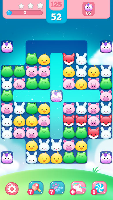 滑动手指拖动三个及以上的同色小动物横竖相连即可消除,完成每关的指定的消除目标或者指定分数,即可过关。